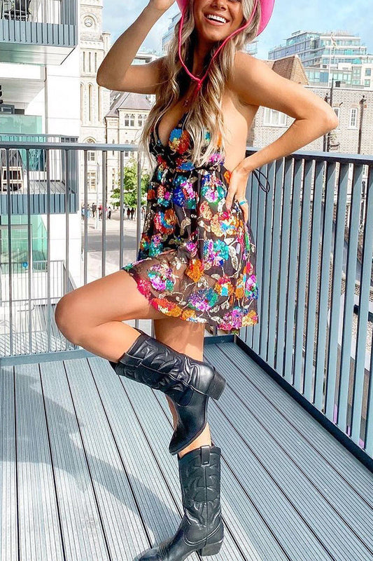 loveedsTM- Rainbow Sequin Open Back Slip Mini Dress