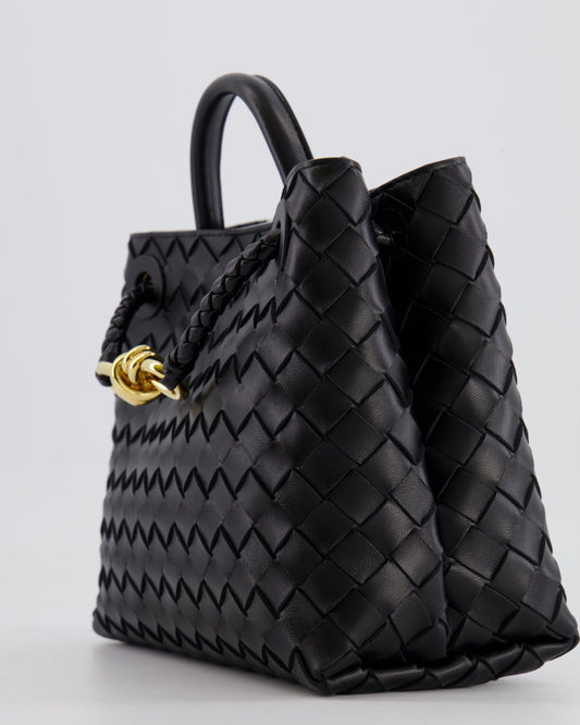 Bottega Veneta Small Andiamo Bag in Black Intrecciato Leather with Gold Hardware RRP £3,460