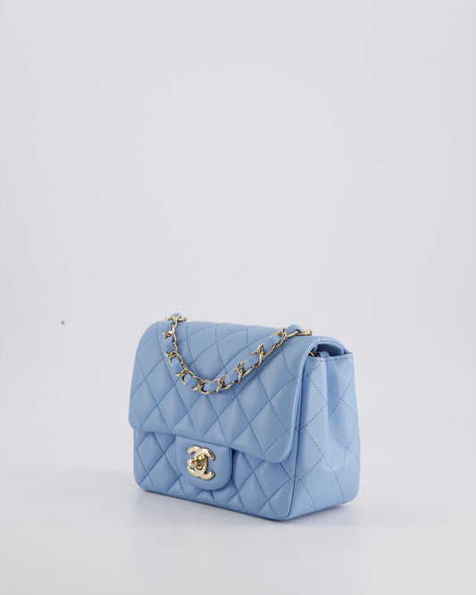 *HOT COLOUR* Chanel Sky Blue Mini Square Bag in Lambskin Leather with Champagne Hardware