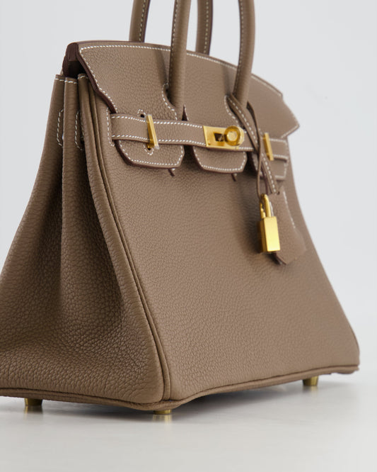 *RARE* Hermès Birkin 25cm Retourne Bag in Etoupe Togo Leather with Gold Hardware