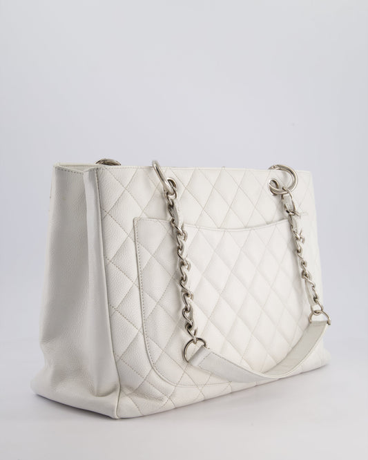 Chanel White GST Tote Bag in Caviar Leather with Silver Hardware