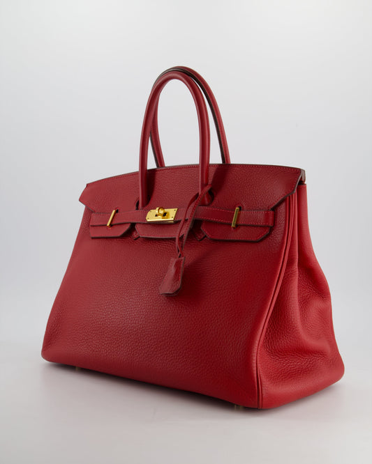 *FIRE PRICE* Hermès Birkin 35cm Retourne Bag in Rouge Clemence Leather with Gold Hardware