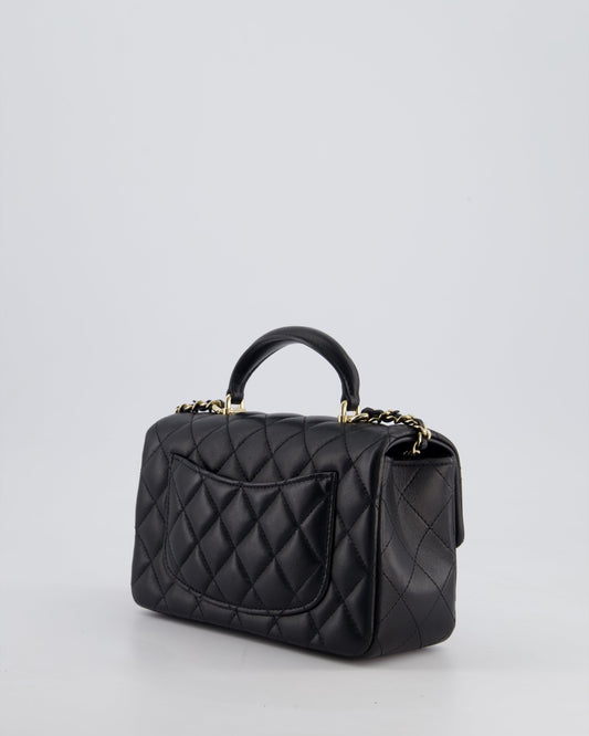 Chanel Black Mini Rectangular Top Handle Bag in Lambskin Leather with Champagne Gold Hardware