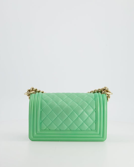 *HOT* Chanel Mint Green Small Boy Bag in Shiny Calfskin Leather with Champagne Gold Hardware