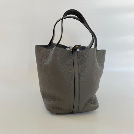 Hermes Picotin 22 Gris Meyer Bag with gold hardware