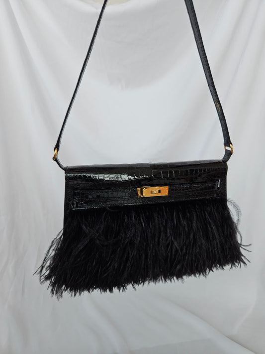 Hermès Kelly Elan Foile Black Shiny Porosus