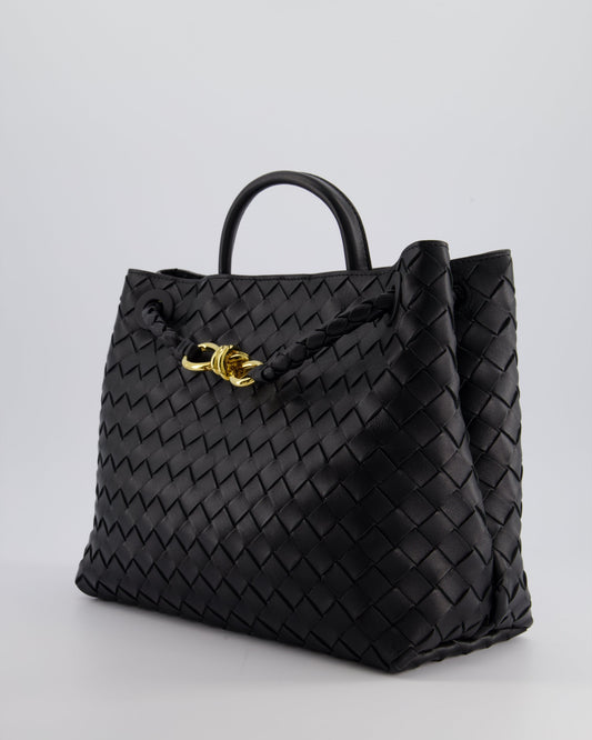Bottega Veneta Black Andiamo Medium Intrecciato Leather Top Handle Bag with Sliding Cross-Body and Gold Knot Hardware RRP £4,030