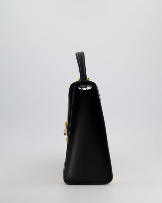 Christian Dior Black Leather Dior Addict Flap Bag with Antique Gold Hardware