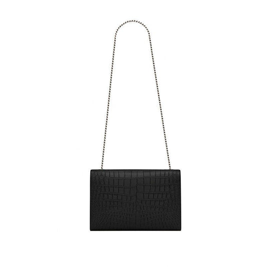 Saint Laurent Large Kate Chain Bag In Black Crocodile Embossed L