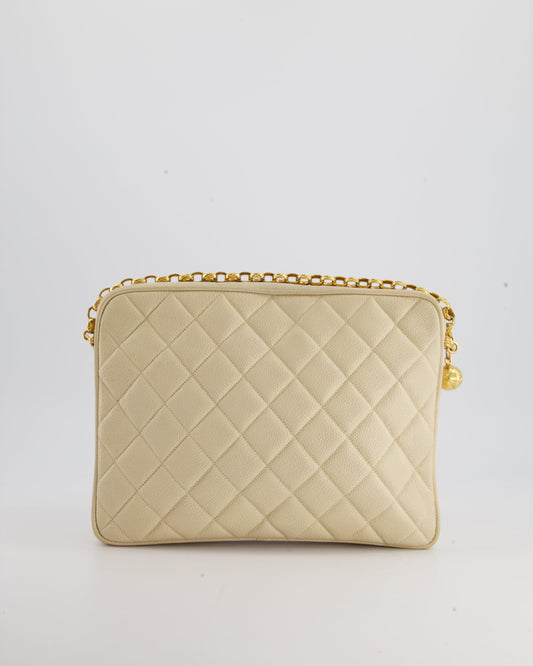 Chanel Vintage Beige Camera Flap Bag in Caviar Leather with Gold Hardware