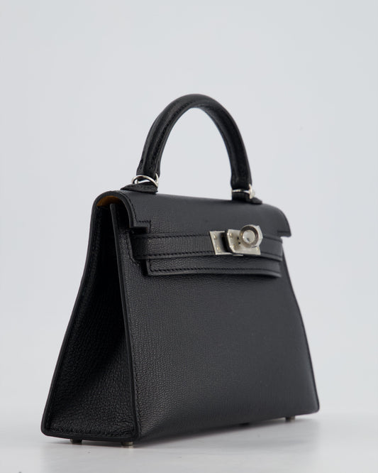 *RARE LEATHER* Hermès Mini Kelly II 20cm Verso Bag In Noir Chevre Mysore Leather, Alezan Interior with Palladium Hardware