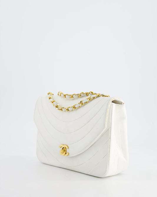 Chanel White Half Moon Curve Flap Vintage Quilted Bag With 24k Gold Hardware