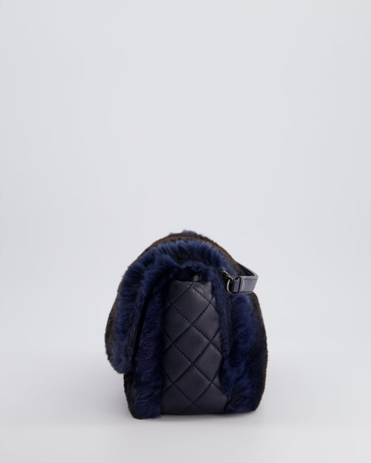 *HOT* Chanel Navy Rabbit Fur Single Flap Bag with Silver Hardware