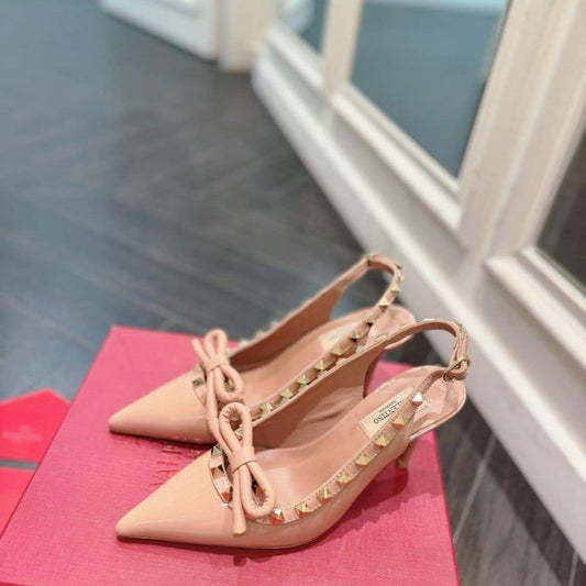 VALENTINO ROCKSTUD BOW SLINGBACK PUMP IN PATENT WITH MATCHING STUDS CINNAMON PINK WS0IB8TZEGF10