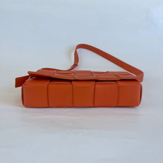 Bottega Veneta Orange Intrecciato Leather Cassette Shoulder Bag
