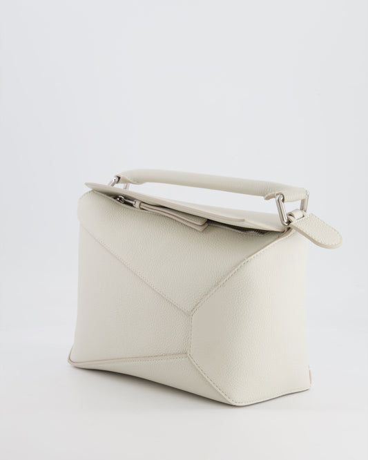 Loewe White Small Puzzle Edge Bag in Grained Calfskin Leather with Silver Hardware RRP £2,550