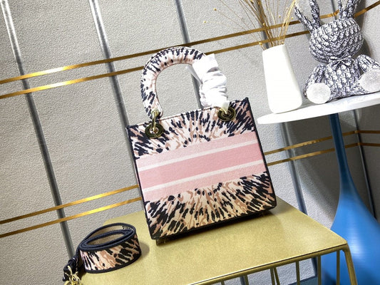 Dior Women Medium Lady D-Lite Bag Multicolor Tie & Dior Embroidery