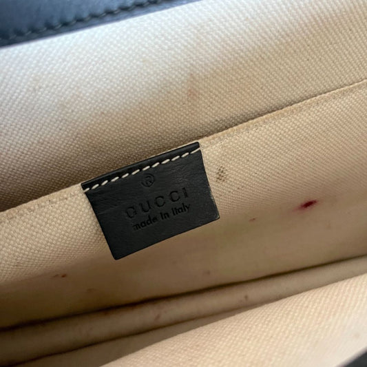 Gucci interlocking G black leather flap bag with goldtone hardware