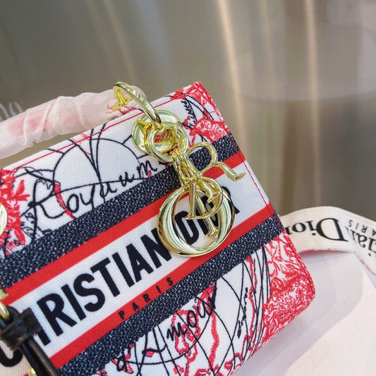 Lady D-Lite Medium Embroidery Canvas 2-Ways Tote Bag White