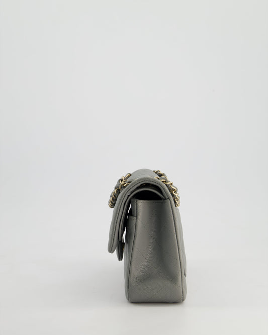 *HOT & RARE* Chanel Stone Grey Small Classic Double Flap Bag in Caviar Leather with Champagne Gold Hardware