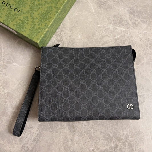 GUCCI GG POUCH WITH GREY TRIM BLACK 18CM 768255 FACQC 1048