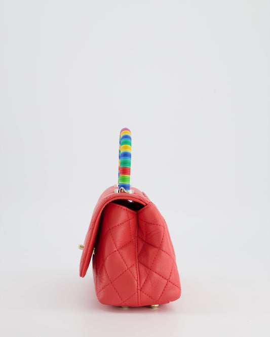*RARE* Chanel Pink Extra Mini Coco Multi-Colour Handle Bag in Lambskin with Champagne Gold Hardware