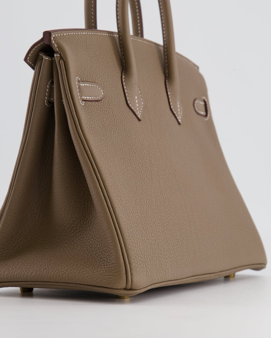 *HOT* Hermès Birkin Retourne 25cm Bag in Etoupe Togo Leather with Gold Hardware