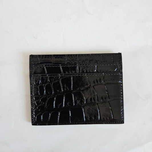 Saint Laurent black crocodile embossed cardholder with gold monogram