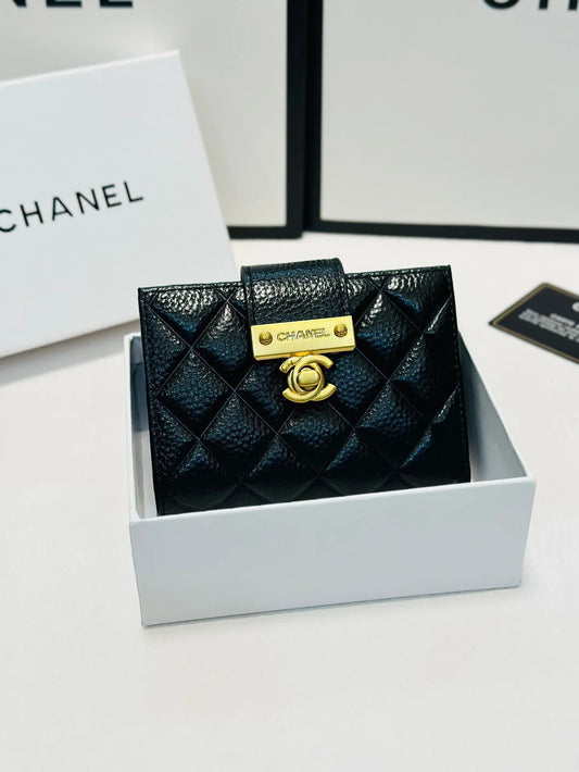 CHANEL Leather Bifold Wallet Classic In Black 19x10cm