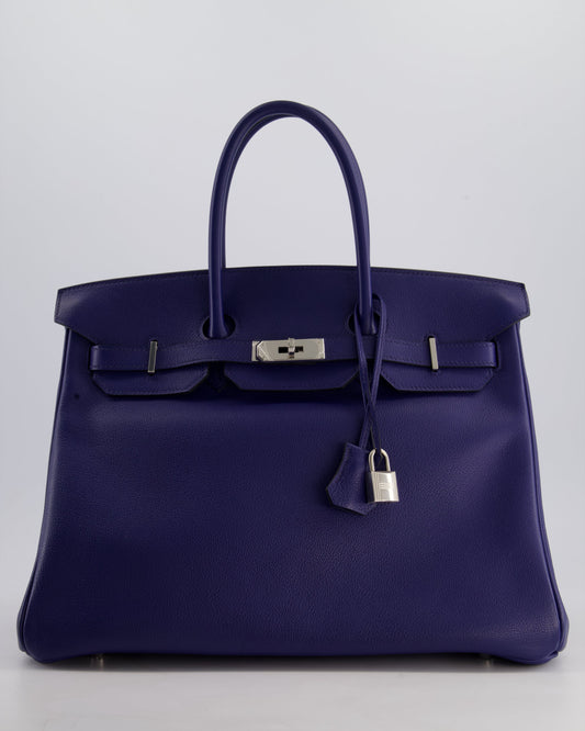 *LIMITED EDITION* Hermès Birkin 35cm Sea, Surf and Fun Bag in Bleu Saphir Novillo Leather with Palladium Hardware and Printed Canvas Interior