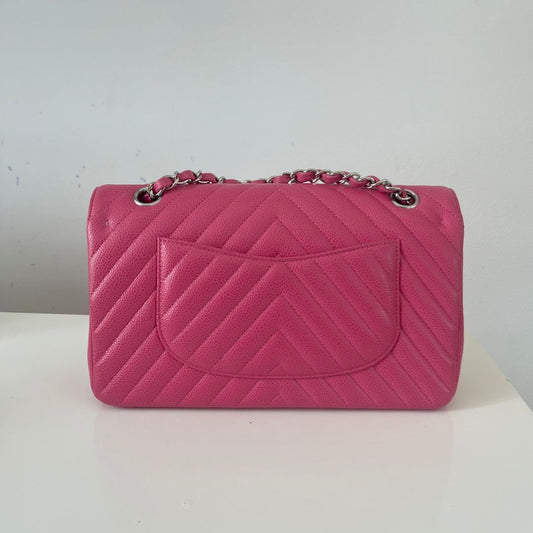Chanel Caviar Leather chevron Pink Double Flap Bag