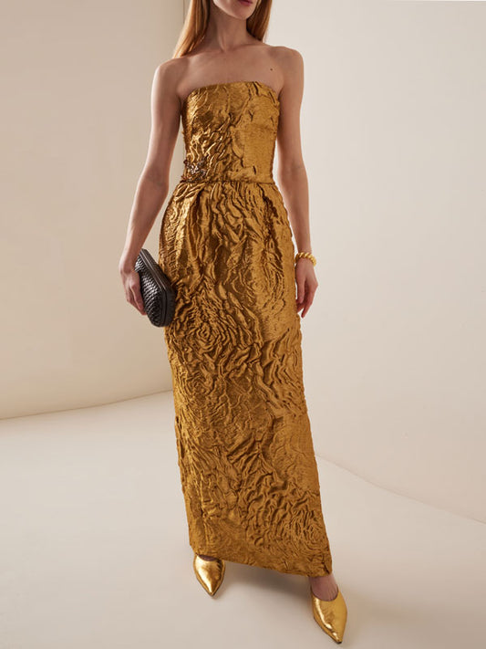 Strapless Lurex Rose Jacquard Cocktail Dress