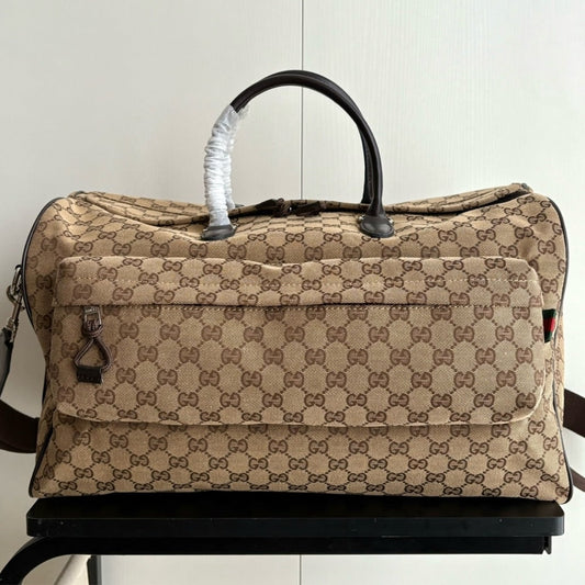 GUCCI MEDIUM GG DUFFLE BAG BEIGE AND DARK BROWN 45CM 800185 FADUJ 9854