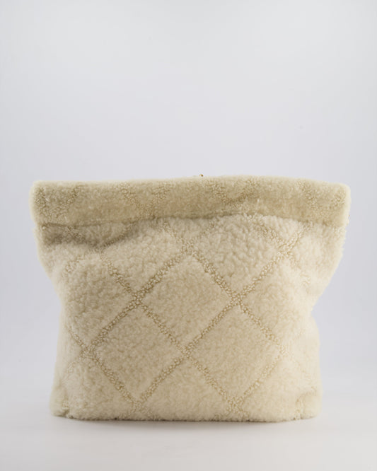 Chanel 24/K Beige Large 22 Shearling Bag with Champagne Gold Hardware