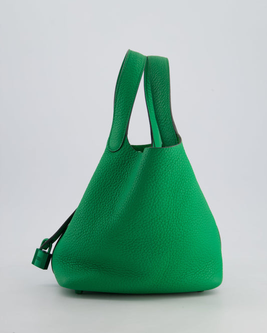Hermès Picotin Lock 18cm in Bamboo Clemence Leather with Metallic Green Hardware