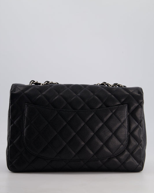 Chanel Black Jumbo Classic Single Flap Bag in Caviar Leather with Silver Hardware