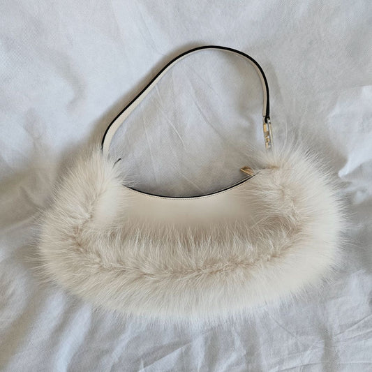 Fendi O'Lock Swing Fox Fur Lined Shoulder Bag