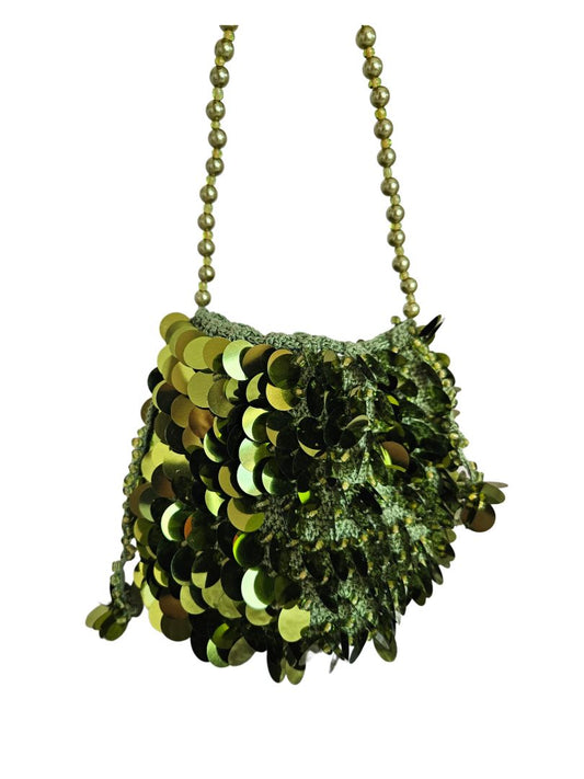 Vanina Green Nuit Scintillantes Bucket Bag in Sequin Knit