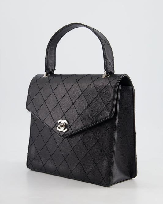 Chanel Vintage Black Top Handle Bag in Caviar Leather with Silver Hardware