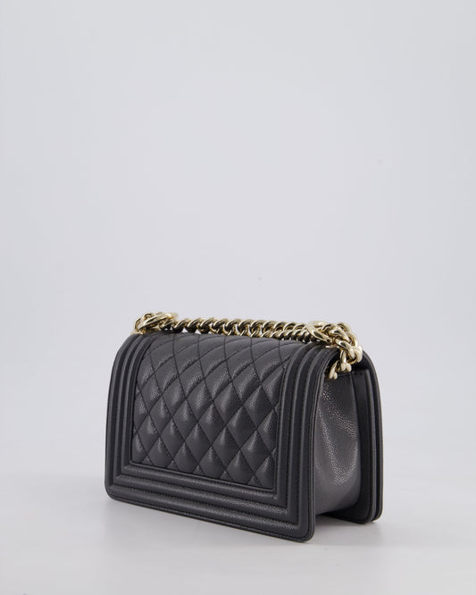 *HOT* Chanel Stone Grey Small Boy Bag in Caviar Leather with Champagne Gold Hardware