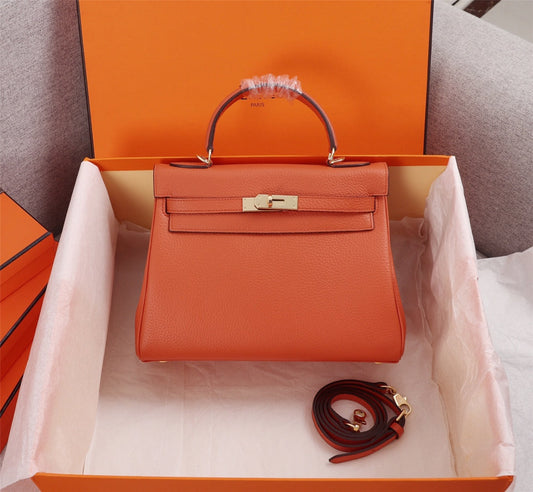 H KELLY ORANGE SELLIER ROUGE EPSOM GOLD HARDWARE 28CM