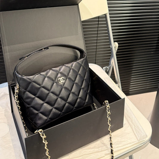 CHANEL 25C HOBO BAG CAVIAR BLACK 17CM