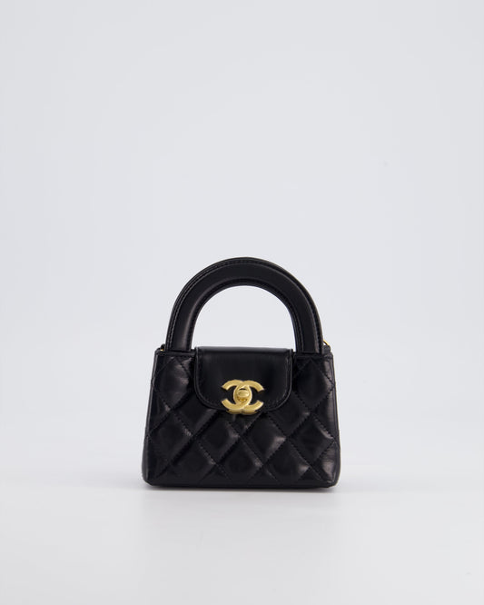 *HOT & RARE* Chanel Black Nano Kelly Shopping Bag in Calfskin Leather with Brushed Antique Gold Hardware