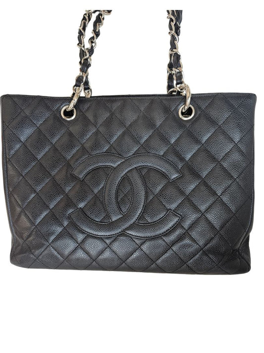 Chanel Black Caviar Leather Grand Shopper SHW Tote (GST) Bag