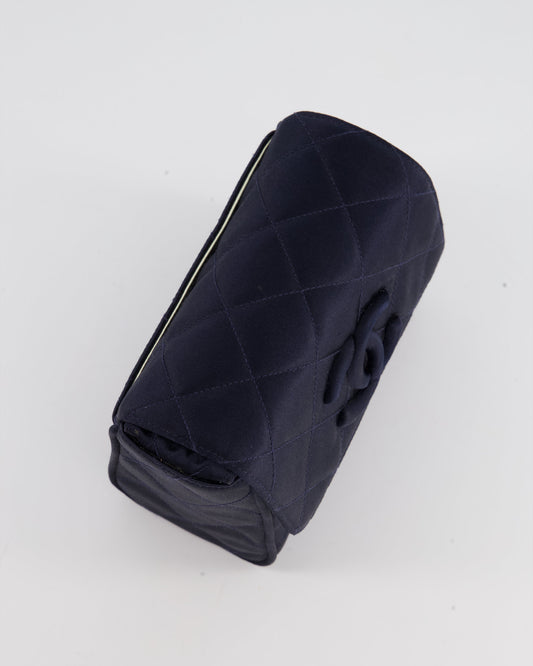 Chanel Navy Vintage Silk Diamond Quilted Shoulder Bag with CC Logo