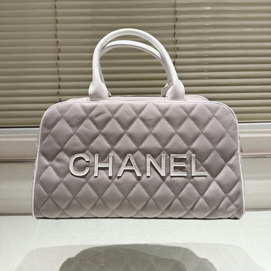 CHANEL BOWLING BAG QUILTED CANVAS BLACK 35CM