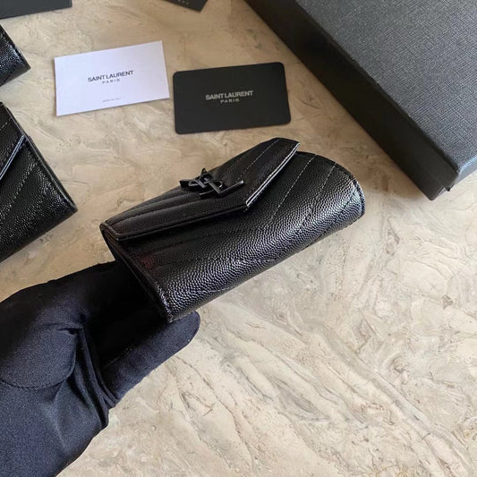 Saint Laurent Women’s Cassandre Matelasse Small Envelope Wallet in Grain De Poudre Embossed