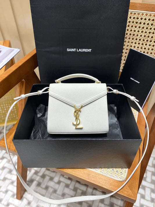 YSL Cassandra Mini Top Handle Bag Canvas with Leather Shoulder bag 20x16x7.5cm