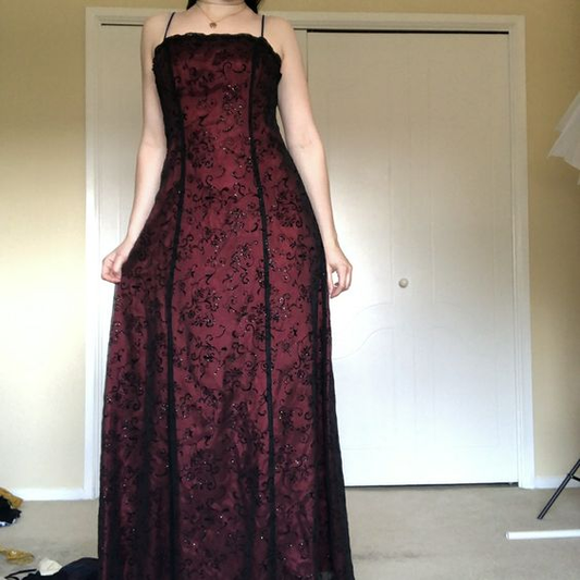 Vintage Burgundy A Line Spaghetti Straps Long Prom Dress SH1224