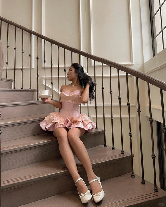 Cute Pink Ruffles Short Prom Dress Homecoming Dress SH1151
